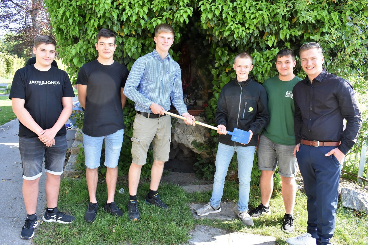 Die Mariengrotte im Schlossgarten war ein besonderes Herzensanliegen von Werklehrer Wilhelm Stemplinger. Er hat die Pflege und Betreuung der Grotte an seine Schüler in der damaligen 8. Klasse übergeben, die diesen Dienst gewissenhaft und umsichtig ausgeübt haben. Jetzt sind Sebastian Bauer, Felix Birndorfer und Michael Gruber (alle aus der Klasse 10B) am Ende ihrer Schulzeit angekommen und sie wollen, dass die Grotte auch weiterhin gepflegt wird. Mit Fabian Grübl, Sebastian Mäusbauer und Andreas Lorenz (alle Klasse 9D) haben sie drei Mitschüler gefunden, die künftig die Blumen an der Grotte gießen, den Efeu ausschneiden und für Sauberkeit und Ordnung rund um den kleinen Gebetsort sorgen. „Wir würden uns freuen, wenn diese Pflege der Grotte auch künftig weitergeführt wird“, sagt Felix Grübl.