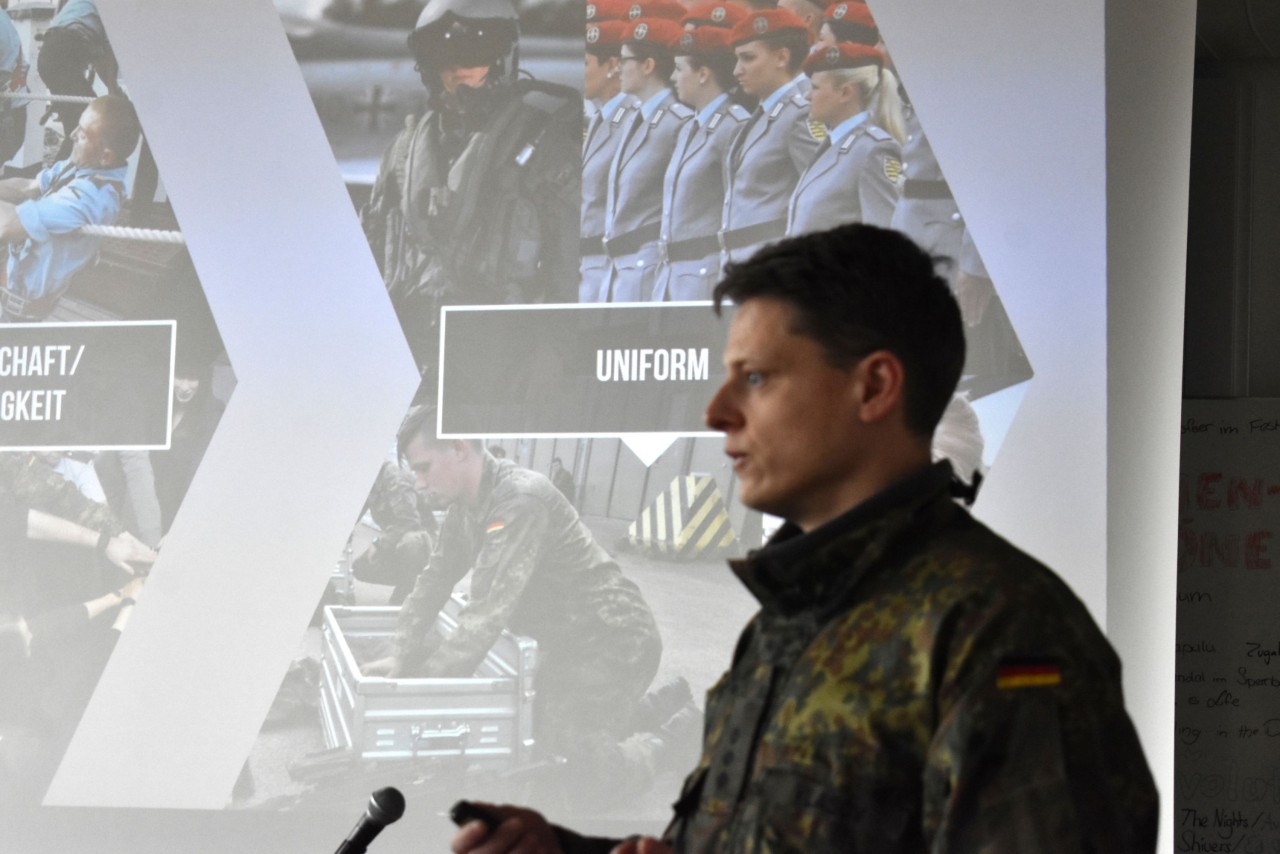 Großes Interesse bei den Schülerinnen und Schüler fand auch Charly Höller, der Einstellungsberater der Polizeiinspektion Passau, aber auch – aktuell auch in der Diskussion um die Wiedereinführung der Wehrpflicht Alexander Vlasov, der Karriereberater der Bundeswehr im Kreiswehrersatzamt in Deggendorf, der fünfzig Ausbildungsberufe vorstellte.