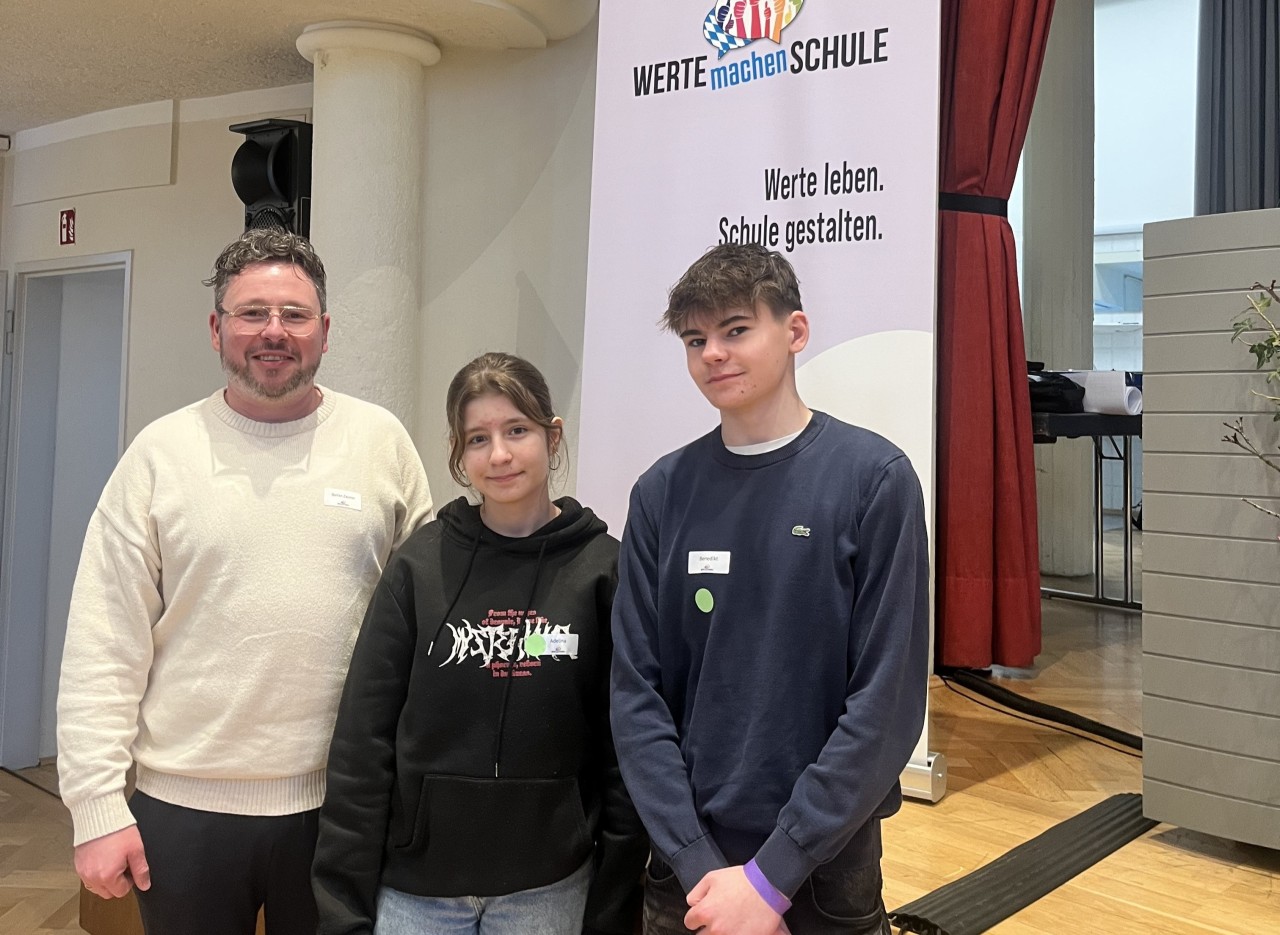Eine starke Gesellschaft braucht starke Kinder, junge Menschen, die gerne Verantwortung übernehmen und Flagge zeigen für Menschlichkeit und freiheitlich-demokratische Grundwerte. Darum geht Bayern seit dem Schuljahr 2018/19 neue Wege bei der Werteerziehung. Schülerinnen und Schüler werden stärker als zuvor direkt in die Wertearbeit an den bayerischen Schulen miteinbezogen. In allen Regierungsbezirken werden im Rahmen der Initiative „Werte machen Schule“ Schülerinnen und Schüler zu „Wertebotschafterinnen und Wertebotschaftern“ ausgebildet, die an ihren Schulen die wertebildenden Maßnahmen aktiv mitgestalten. Die Lehrkräfte leben ihren Schülerinnen und Schülern Tag für Tag Werte wie Toleranz, Hilfsbereitschaft, Empathie und Gerechtigkeit vor – in allen Fächern, in allen Jahrgangsstufen und als starke Vorbilder im Schulalltag. Als einzige kirchliche Schule in Niederbayern stellt die Maria-Ward-Realschule in Neuhaus mit Adelina Rotari und Benedikt Peschl „Wertebotschafter“ im Freistaat, die Projekte zur Werteerziehung an ihrer Schule durchführen und deren Tätigkeit von Stefan Zauner (links) begleitet wird.